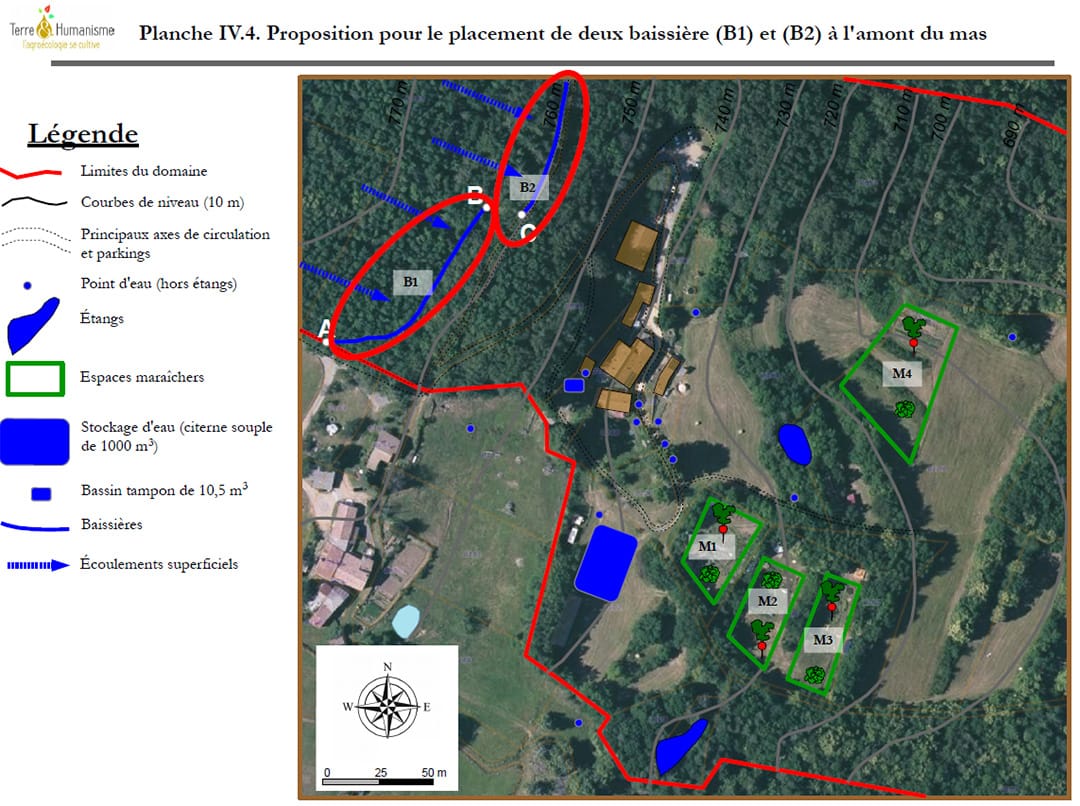 Les propriétaires d’un domaine et de gîtes dans les Baronnies ont sollicité T&H pour les accompagner dans la mise en place d’un espace maraîcher sur leur terrain. L’idée principale étant de permettre à leurs hôtes et visiteurs de bénéficier d’une cuisine “du jardin à l’assiette”, approvisionnée principalement par cet espace productif. En parallèle, ils souhaitent également que leurs hôtes puissent aller flâner dans cet espace et cueillir eux-mêmes les récoltes. T&H les a conseillés pour l’aménagement de cet espace (planches de culture, serre, zone de compostage…), en se basant sur une étude des sols et des éléments naturels présents sur le lieu. Notre expert leur a ensuite exposé plusieurs préconisations sur la gestion de la ressource en eau dans une démarche agroécologique.